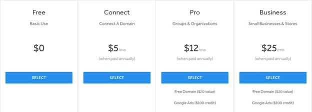 Weebly has a free plan that gives users access to a few basic features.