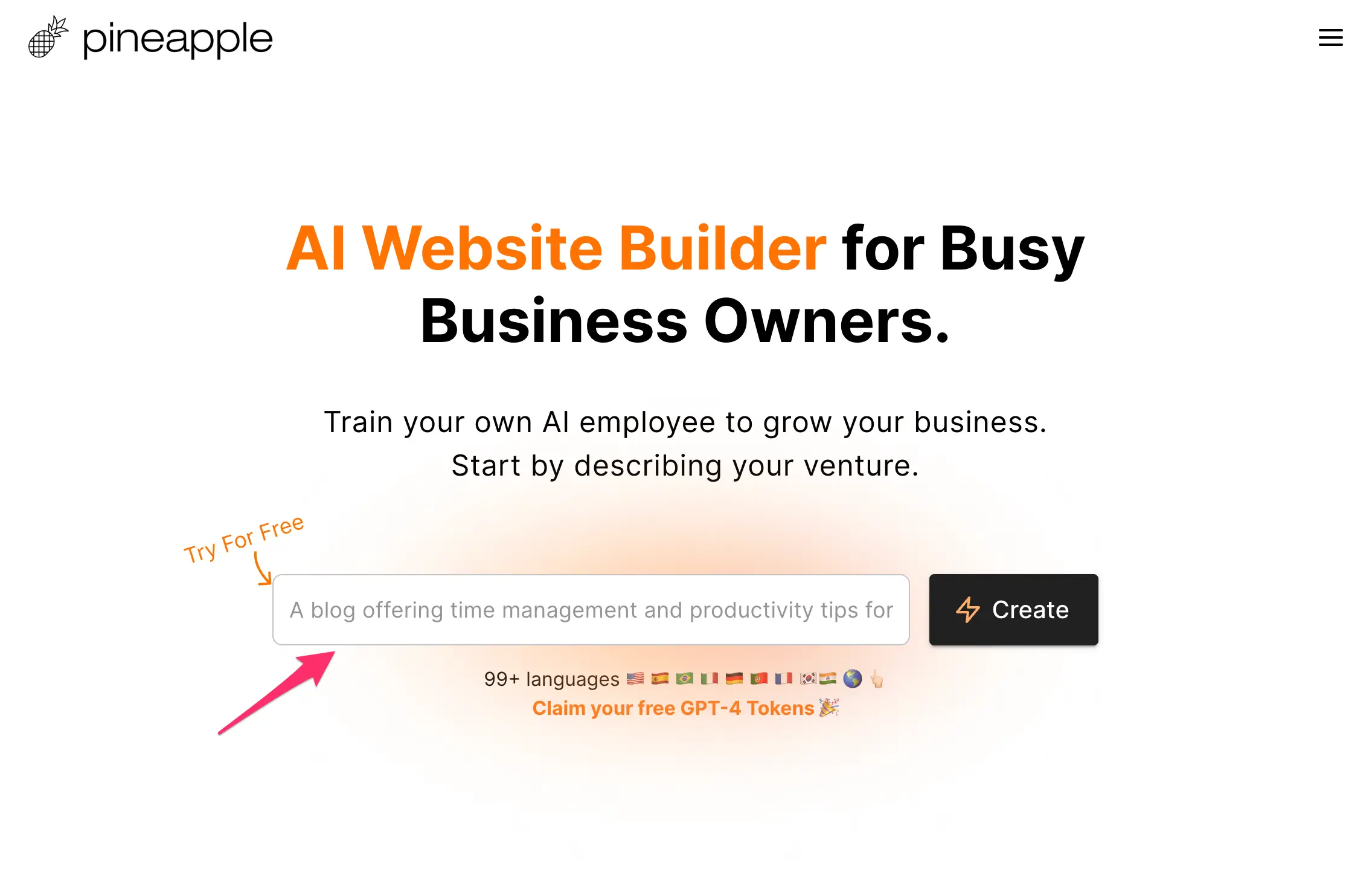 Imagine you're offering LinkedIn coaching and need a landing page. Pineapple Builder lets you input what you need in your own language, and the AI crafts your site and content accordingly. Just navigate to our AI Website Builder page and describe your business. 👇🏻