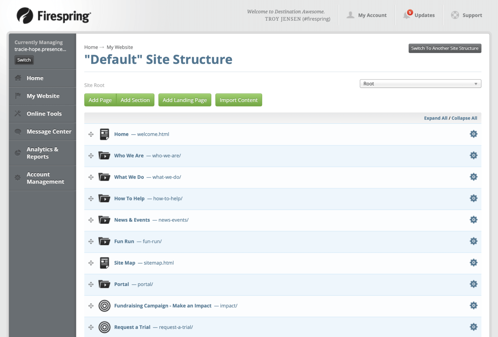 Firespring has a complete nonprofit website-building tool built on its internal content management system (CMS).