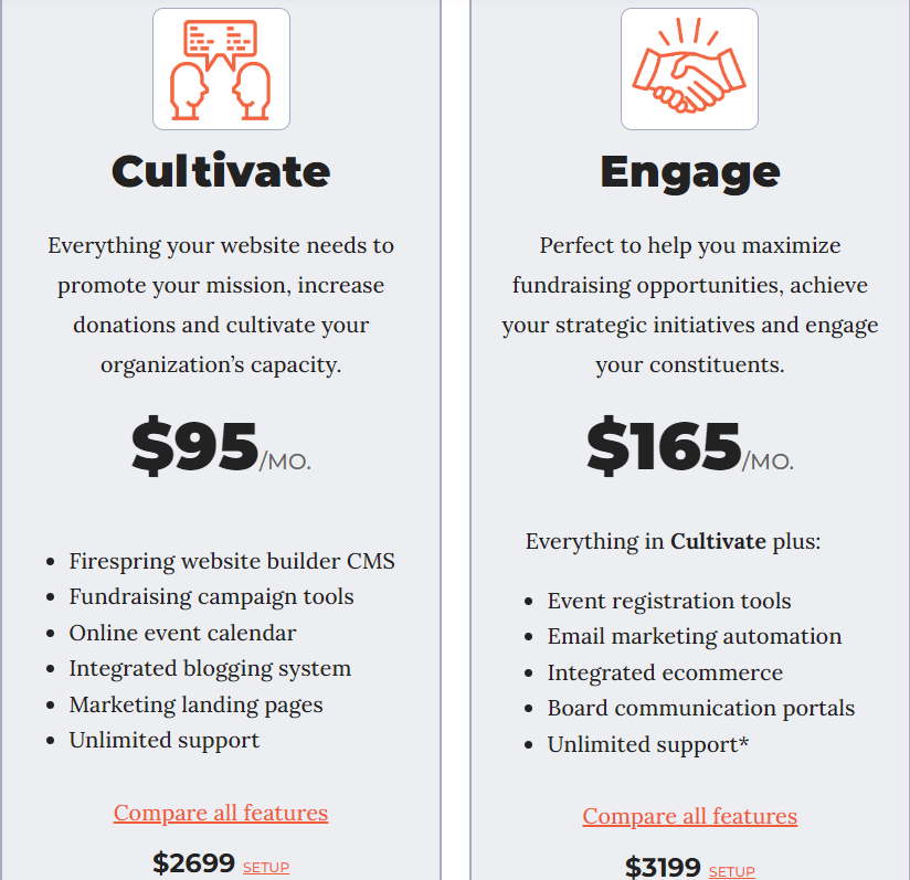 Cultivate | Everything your website needs including Firespring CMS, Fundraising tools + much more | $2699 set up fee then $95/mo