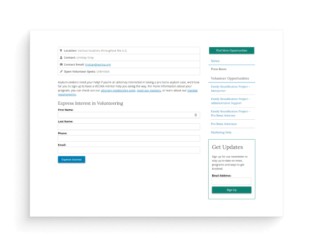 Recruiting volunteers is a major element for any non-profit and with Wired Impact, you get access to their volunteer system as well as a flexible form builder to enable you to create bespoke sign-up and RSVP forms.
