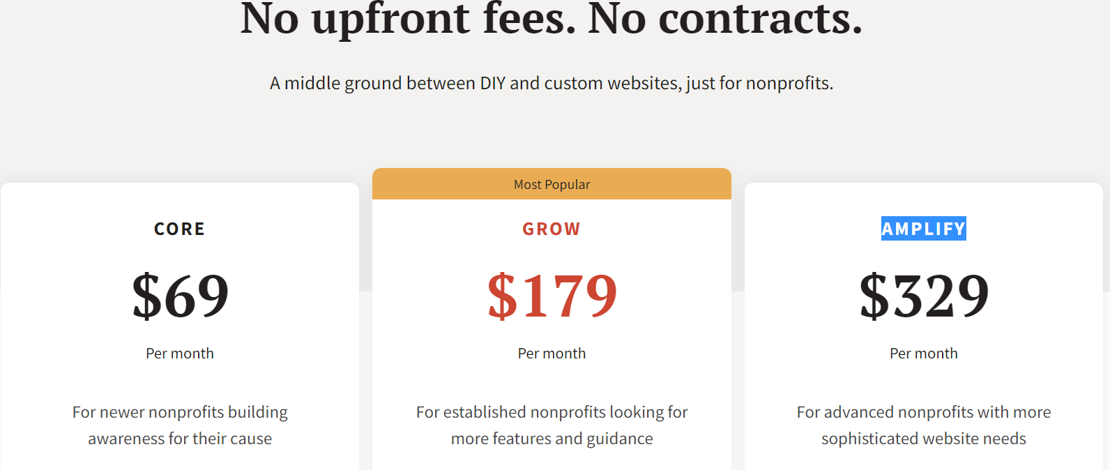 Wired Impact is built for nonprofits that need more than a DIY website builder (think Squarespace or Wix) but without complex needs requiring a custom site built from scratch.