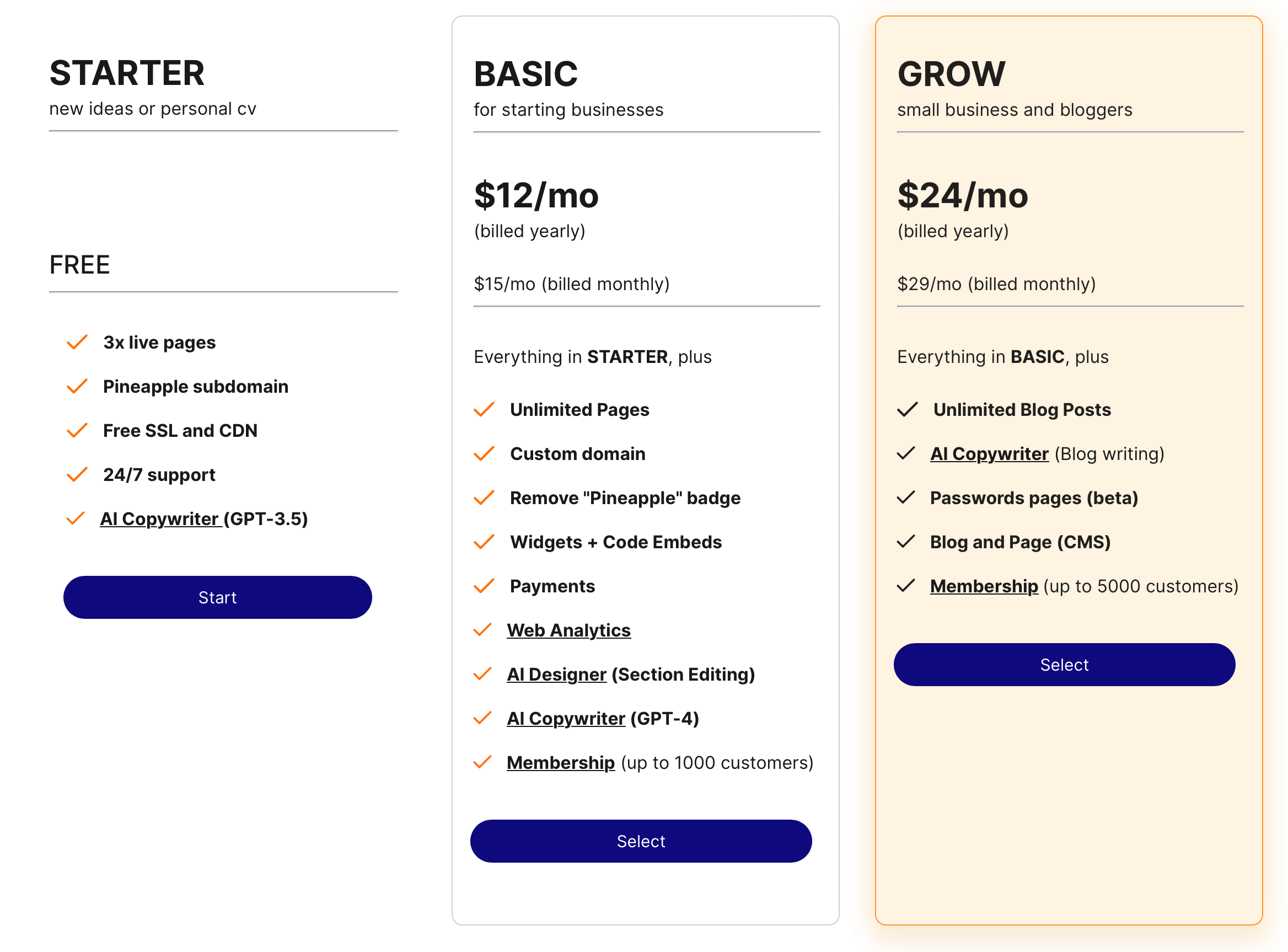 Pineapple Builder offers a range of pricing plans to cater to different needs.