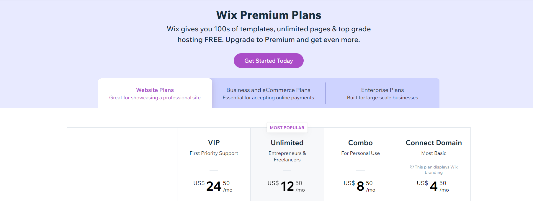 Wix offers a range of premium plans for different needs, from personal use to large-scale businesses.