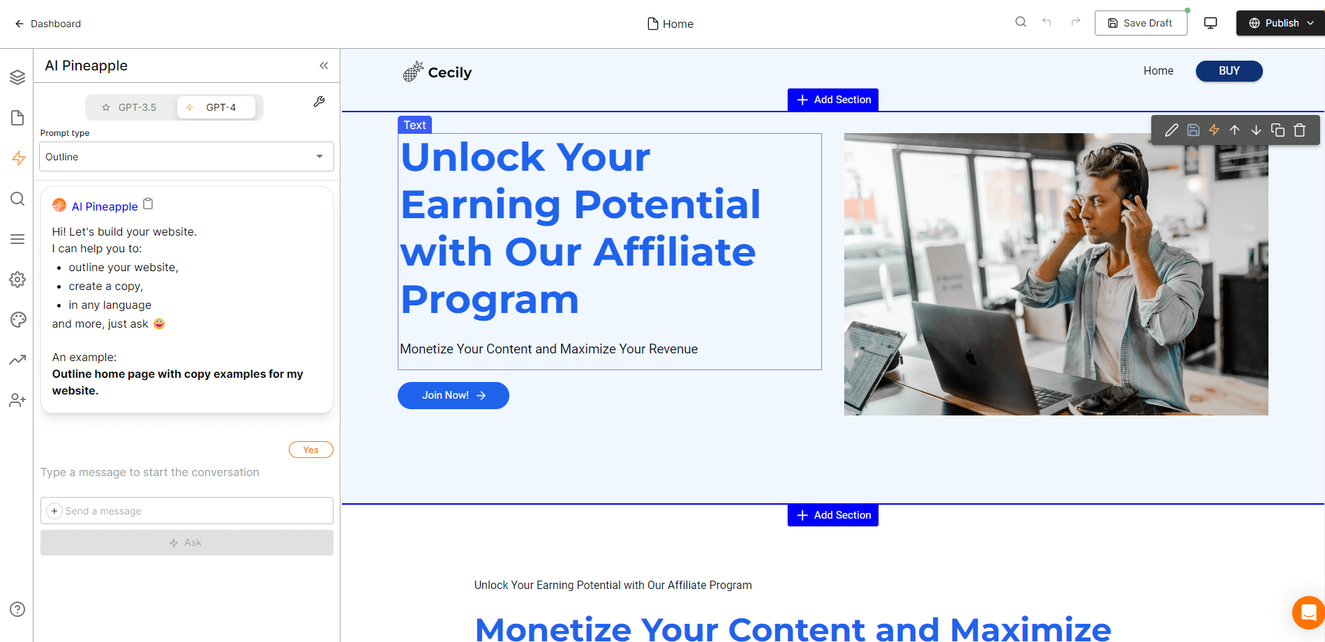 With Pineapple Builder, you can create and edit your affiliate website conversationally by chatting with Pineapple AI (your personal design chatbot). We also offer AI content generation and SEO tools, dynamic templates, and more.