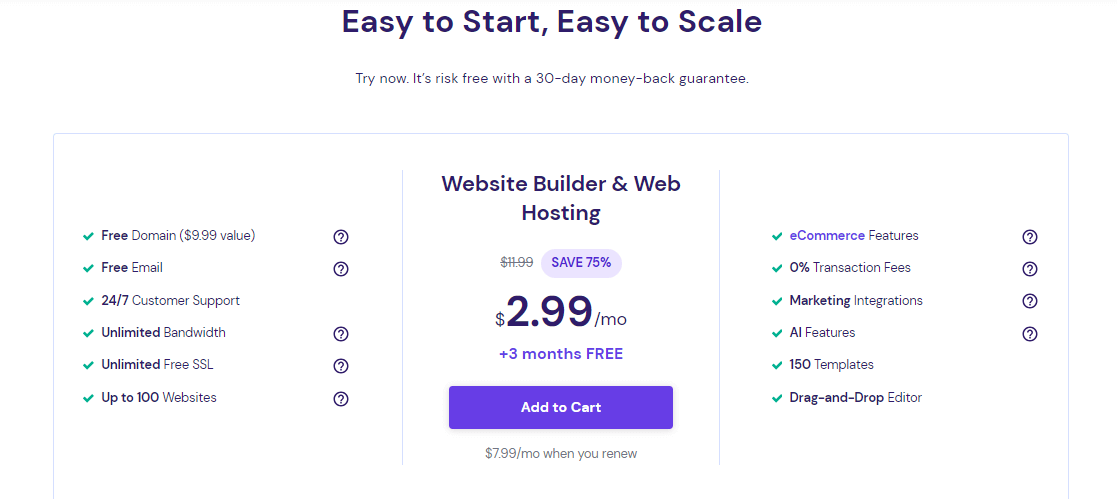 Hostinger offers a range of pricing options for its website builder and hosting services. The pricing starts at S2.99 per month, with discounts and free months available. The exact price range may vary depending on the specific package and additional features selected.