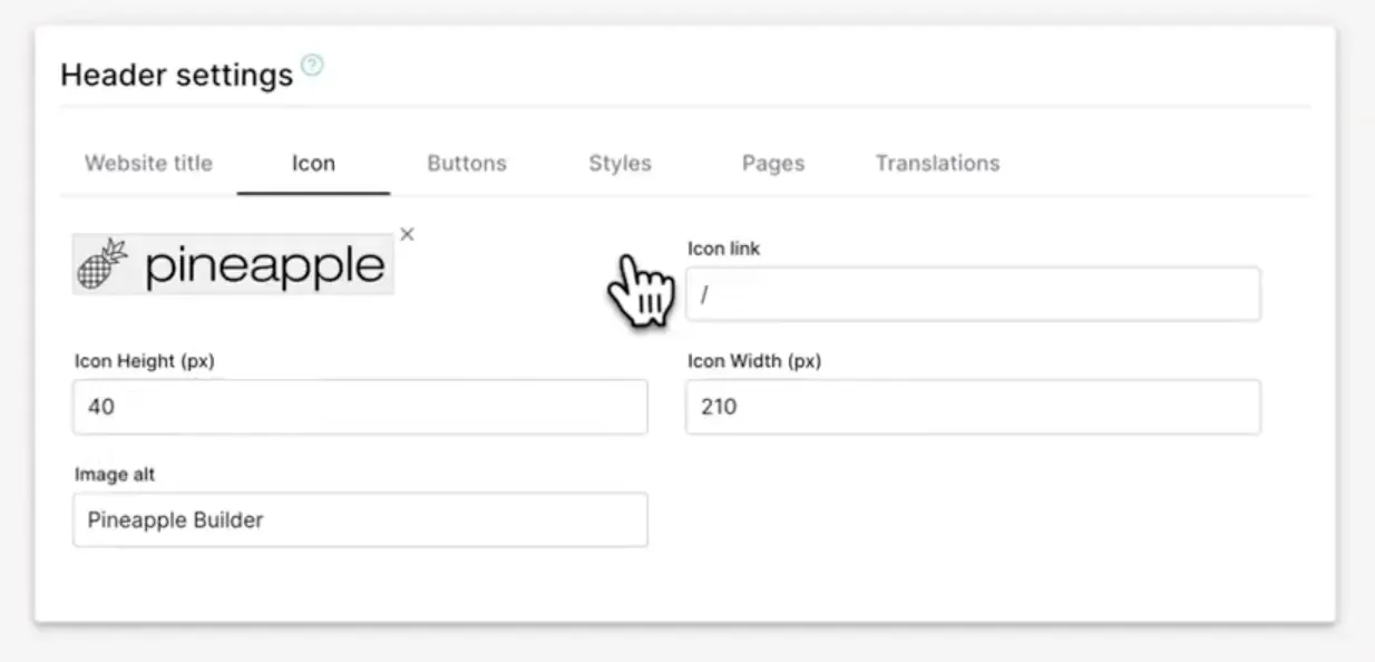 In the first tab, you can add your website title. For the icon, you can add your own or generate one using AI. Configure the height, width, and link for the icon. Typically, clicking the icon should navigate to your homepage (index page). Don’t forget to add an image alt text for better SEO.