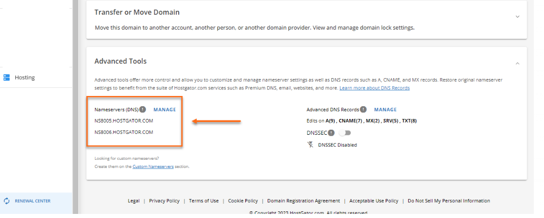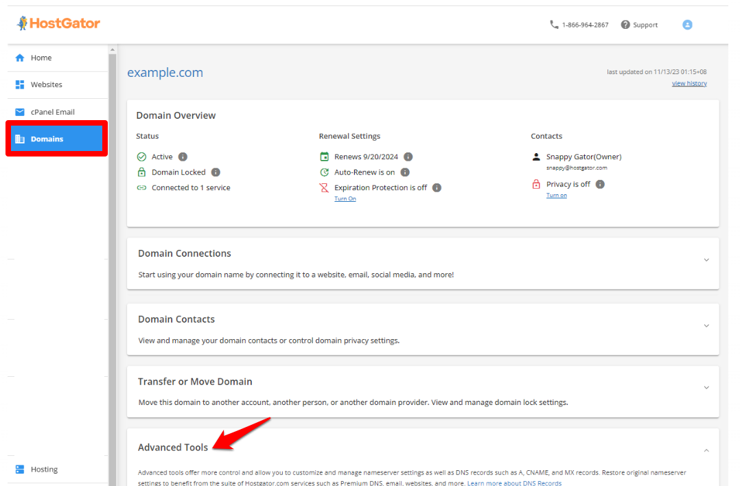 Click the Domains tab located in the left-side navigation menu and choose Advanced Tools section.